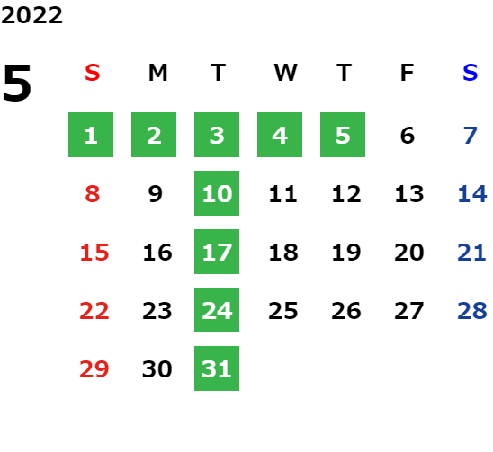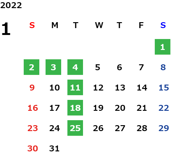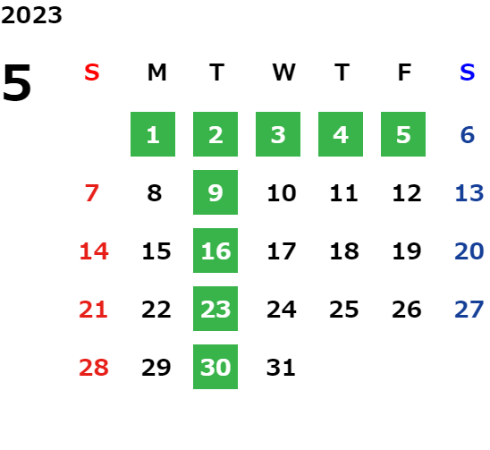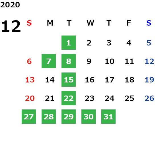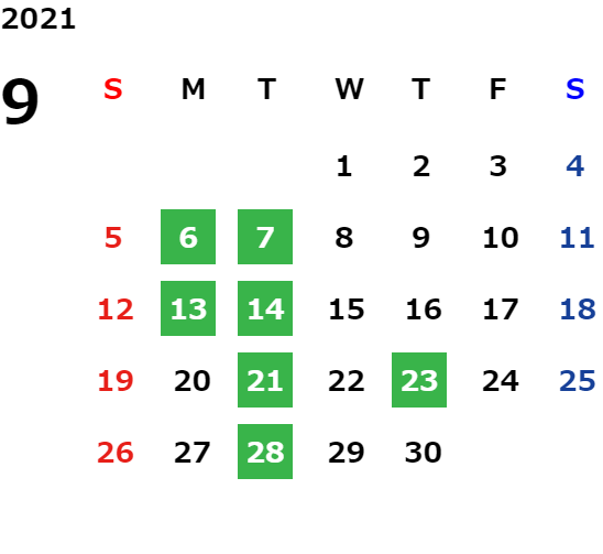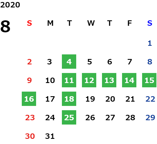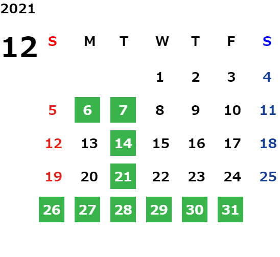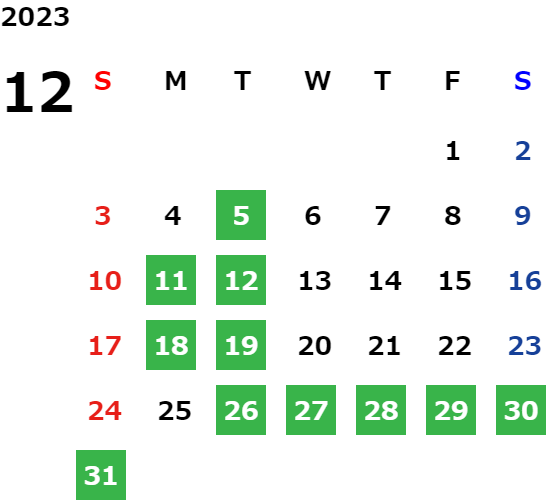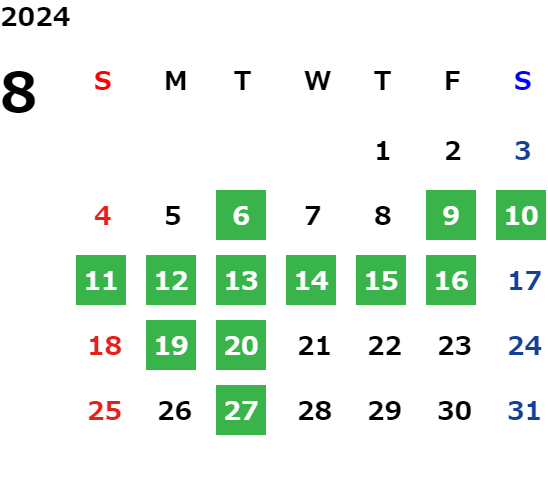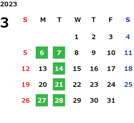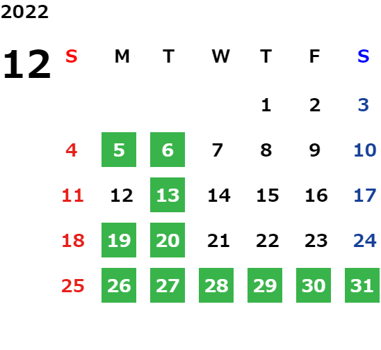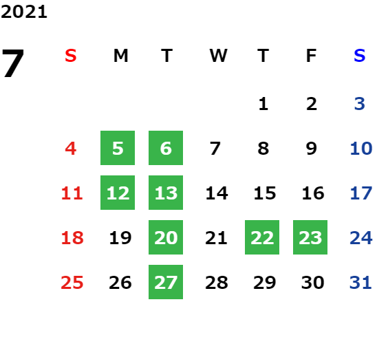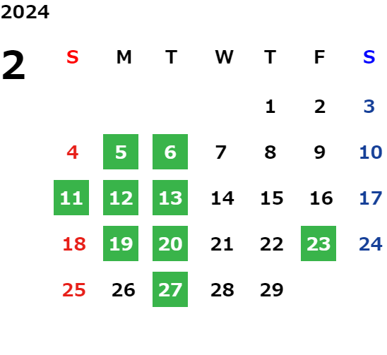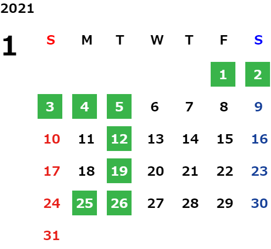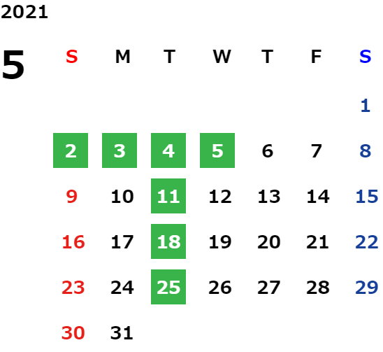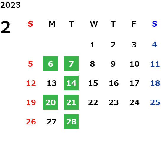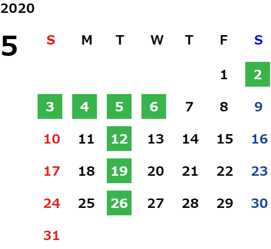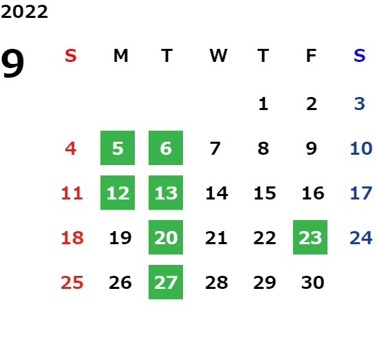 営業日カレンダー