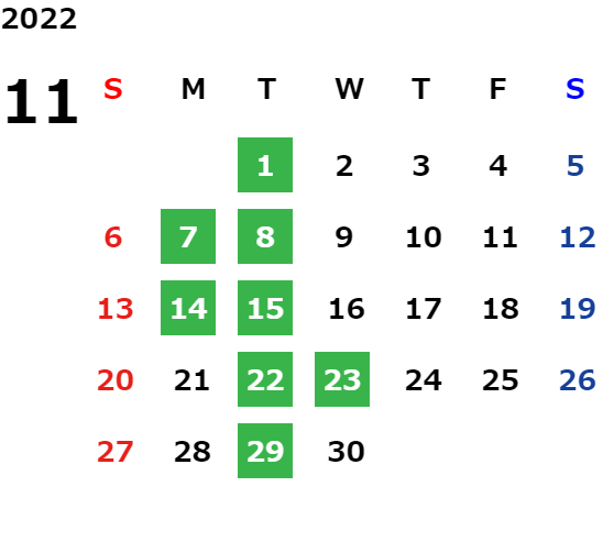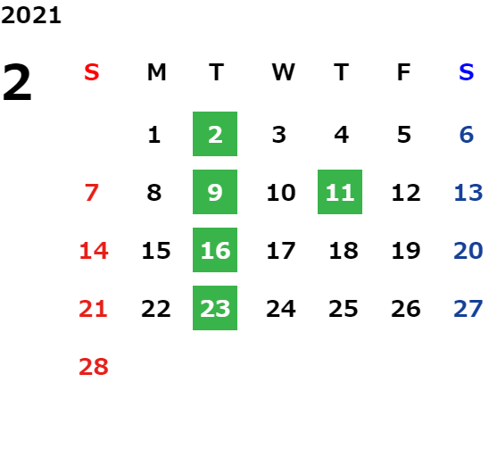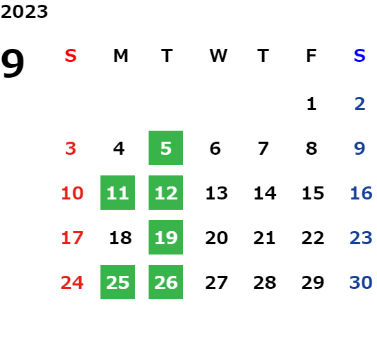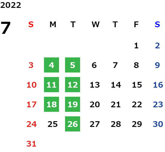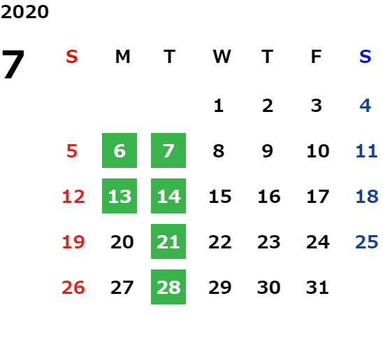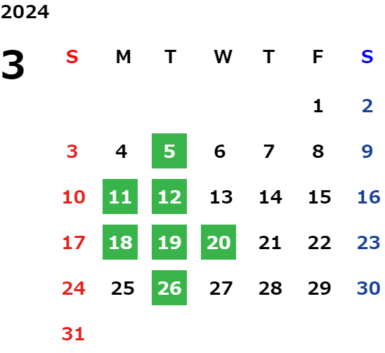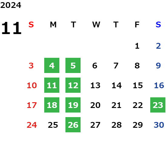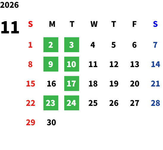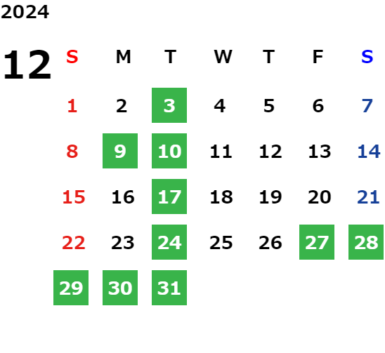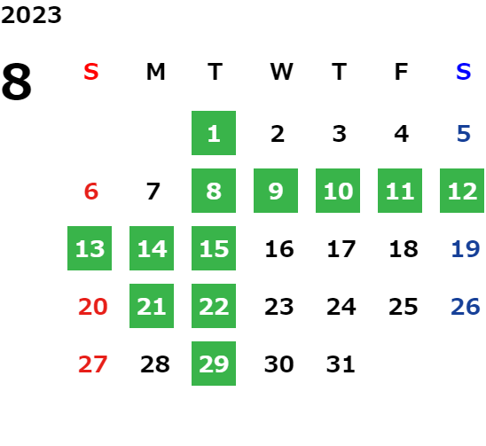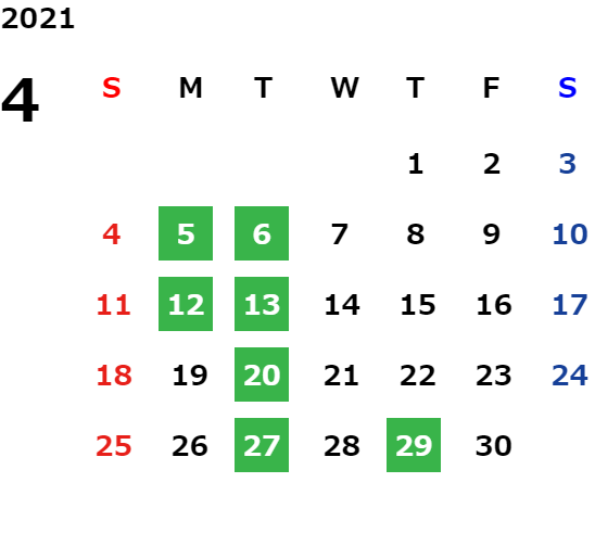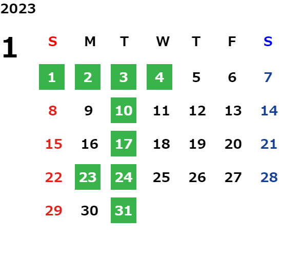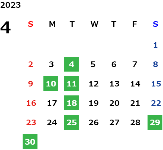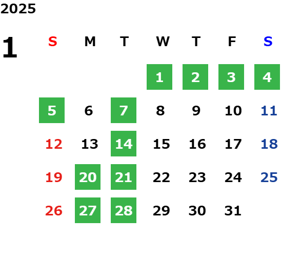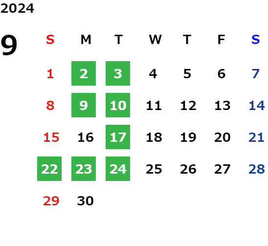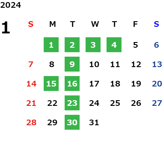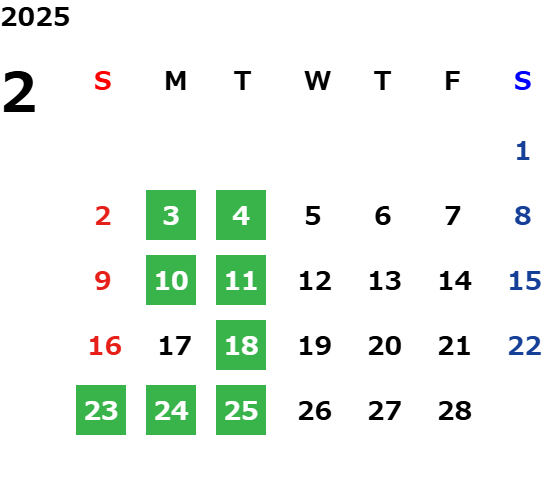 営業日カレンダー