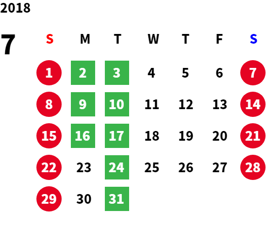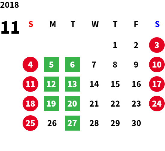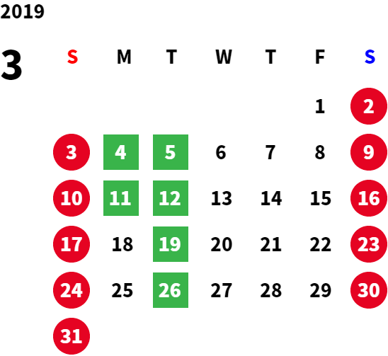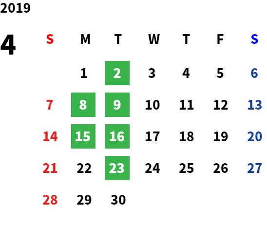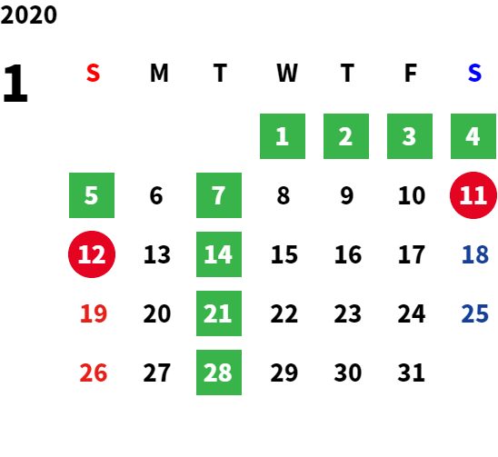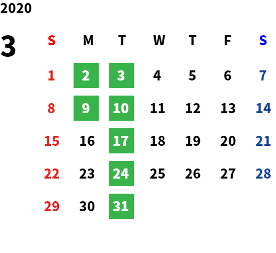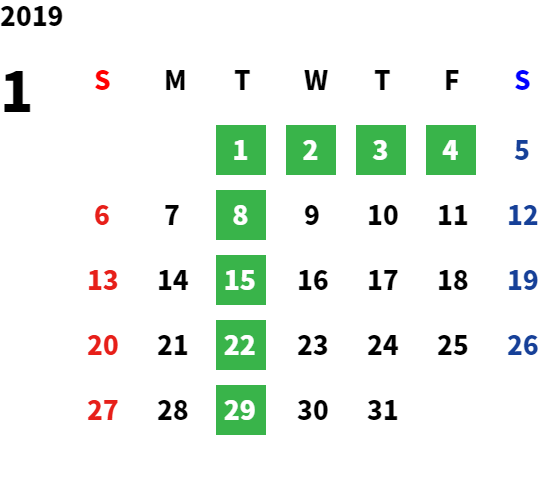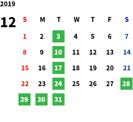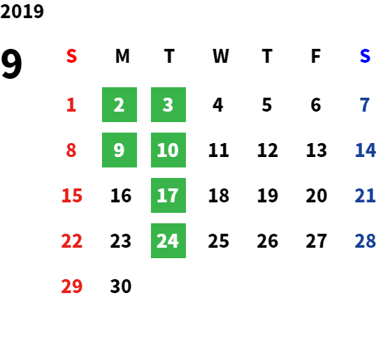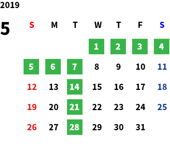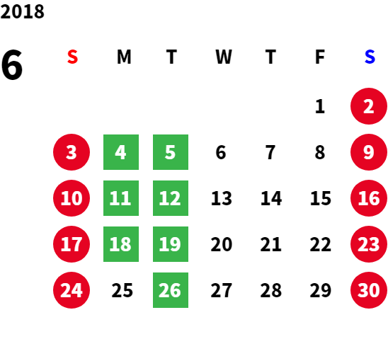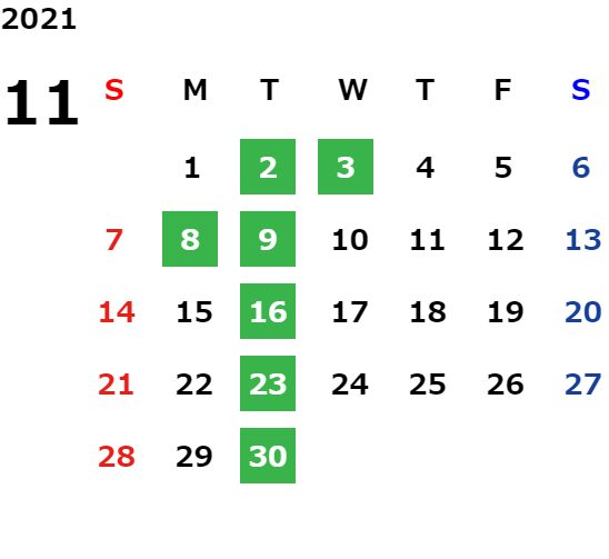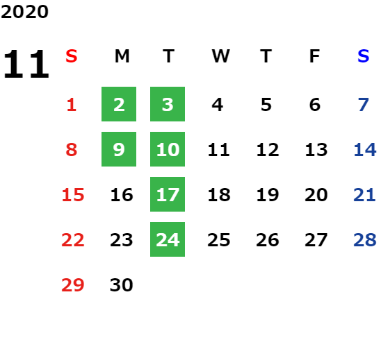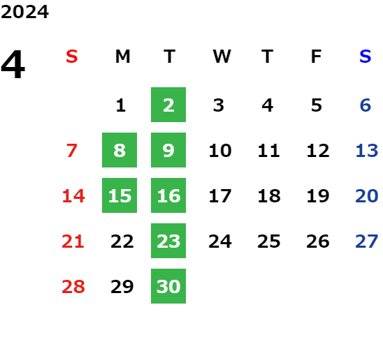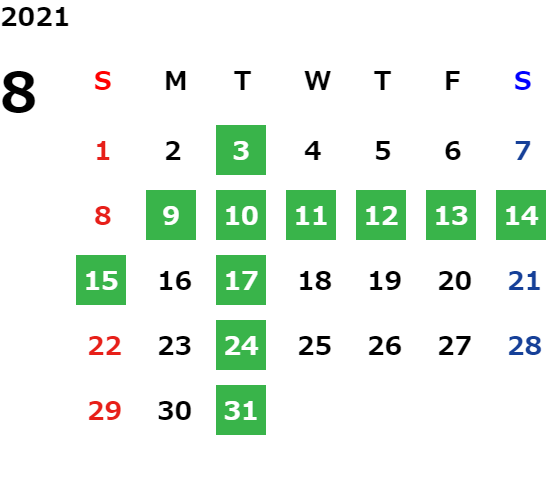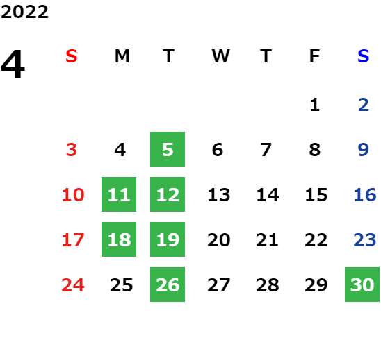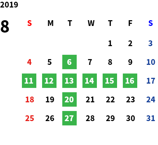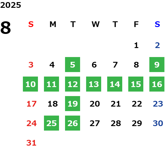 営業日カレンダー